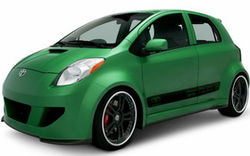 В этом году на автосалоне SEMA, похоже, ни один автомобиль не остался без внимания. Руки тюнеров добрались даже до скромного хэтчбека Toyota Yaris. Yaris Tailback совершенно преобразился внешне: хэтчбек выкрасили в зеленый цвет, кроме того наряду с полным бодикитом у него появились автоматические задние двери с шарнирами на задней стойке и раздельные дверцы багажника. Стандартный кузов дополнили комплектом 18-дюймовых колес DPE с шинами Nitto и тормозной системой Rotora. Под капот автомобиля установили мотор, который может работать как на сжиженном природном газе (CNG),  так и на бензине. Бак с природным газом расположен в задней части автомобиля, увидеть его можно, открыв дверцы багажника. В салоне автомобиля разместили аудиовидеосистему Pioneer с двумя мониторами, способными воспроизводить видео в том числе и со встроенного iPod. Кроме того, интерьер украшают передние и задние сиденья, обитые серой замшей и черной кожей с желтой строчкой.